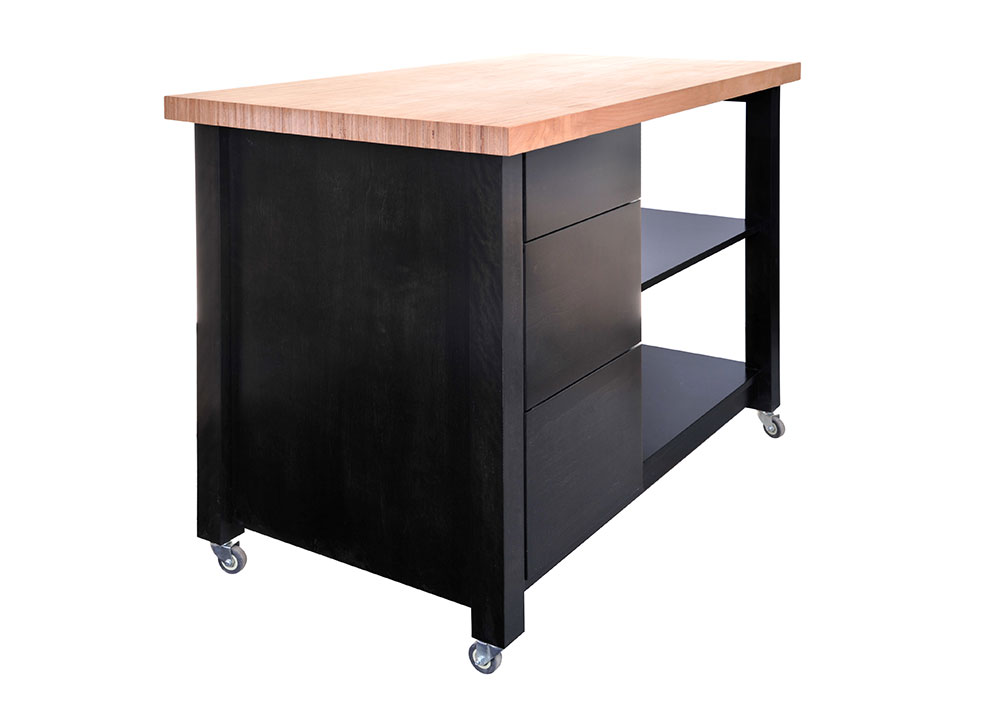 People love our versatile movable kitchen islands. It’s a great addition to cabinets for extra storage. It creates an open space for cooking whether you are alone, with friends or your family. Add some counter stools and it becomes a working area, or it replaces a dining table. In summary, our movable kitchen island will become the centerpiece of your kitchen for cooking, working or just having a drink before a night out on the town.